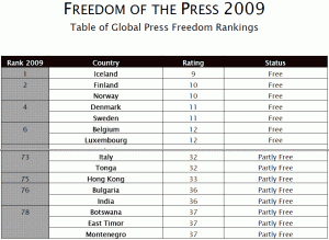 E’ uno degli argomenti attuali di maggiore discussione quello della libertà di stampa nel nostro paese. Il Presidente del Consiglio prima dice che giornali e telegiornali sono tutti di sinistra, poi, in merito alla manifestazione di Roma del 3 Ottobre scorso, afferma che in Italia la libertà di stampa è evidente che c’è e successivamente, dopo la bocciatura del “lodo Alfano”, torna ad inveire con Istituzioni e stampa dicendo che è tutto di Sinistra.